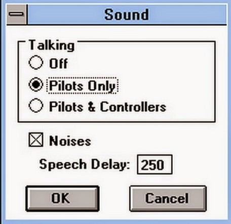 Now select SIMULATION | SOUND. I recommend "Pilots Only" for talking. Make sure "Noises" is selected to hear the alarms and bells. My systems seem to work best when the "Speech Delay" parameter is set between 200-300. Try a few different settings to see what works for you.