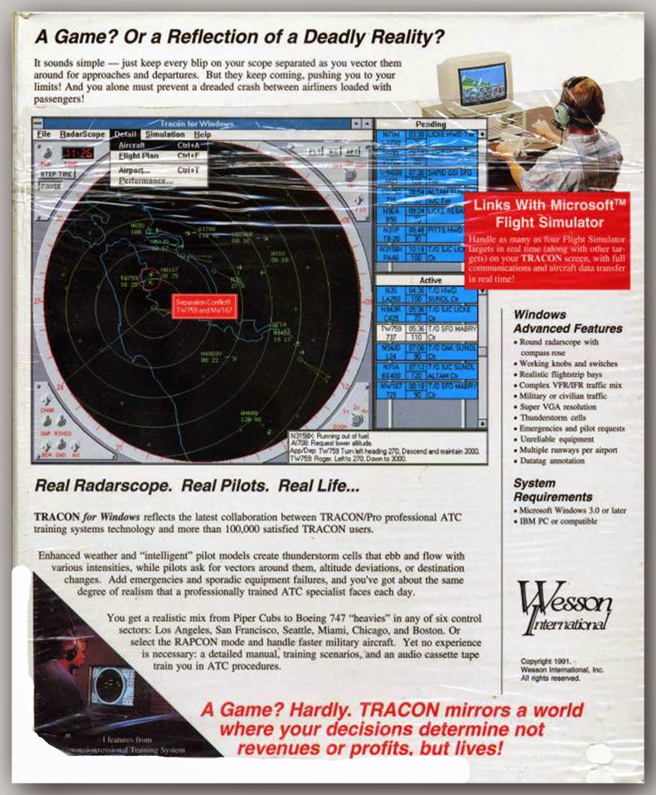 TRACON II was released in 1990 by Wesson International for Windows 3.0. It ran solely on that operating system, which is a major problem for somebody who wants to experience the game on a modern computer system.